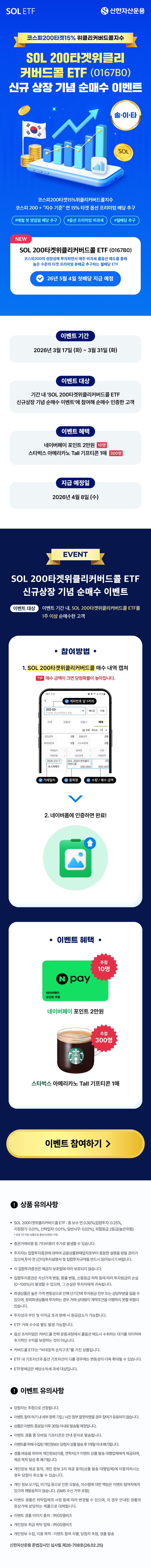 [SOL ETF] SOL 200타겟위클리커버드콜 신규상장 순매수 이벤트 | SOL 200타겟위클리커버드콜 신규상장 (0167B0)